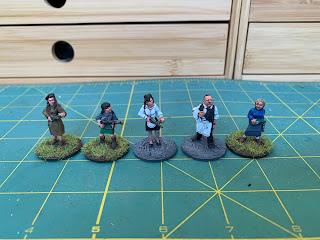 When basing I felt it wrong to put Rene and Yvette on earth bases as they were dressed for working in the Cafe. The others; Maria, Mimi, Michelle of the Resistance and the other Resistance fighters were done for the Countryside.